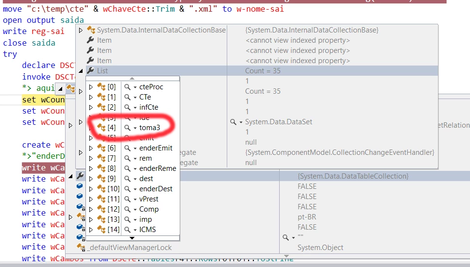 Aqui esta a parte complicada, como movimentar para variáveis o conteúdo dos campos. Na imagem destaquei toma3 alà existe mais um "nÃvel" como ter acesso a isso.