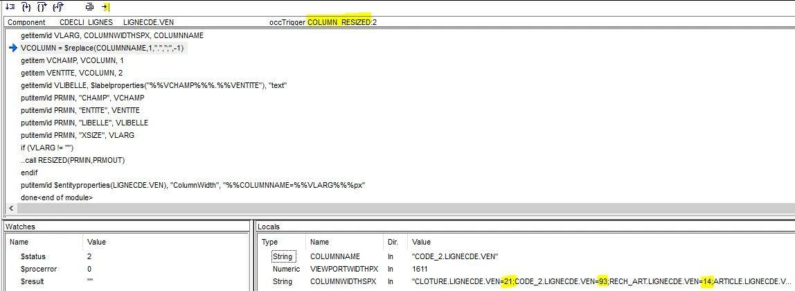 In Uniface 10.4, I get the size of a column in the ExtendedTrigger COLUMN_RESIZED of my occurrence (cf catch 1) that is activated when I change the width of any column. It's OK.