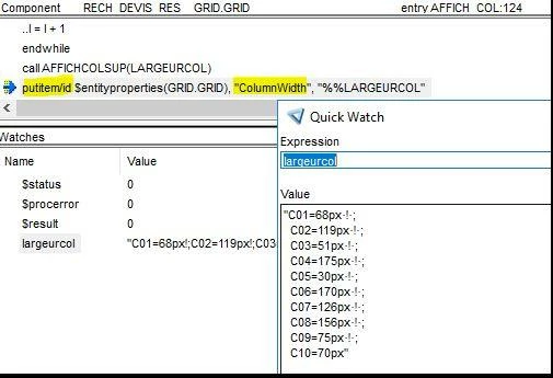 But when I want to assign the width of the same column (cf catch 2) with the same width, it is drawn 7 time more larger. Uniface acts as if the unit was not "px".