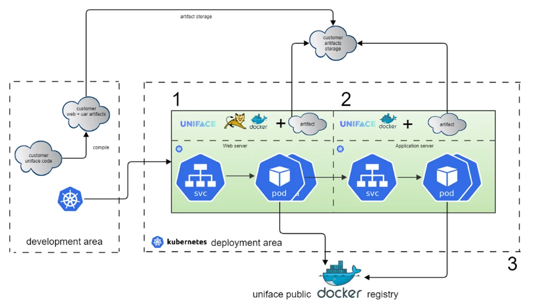- Another Docker image with the Uniface runtime on which the application is deployed.